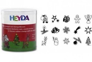 Set obsahuje 12 motivů. Razítka jsou upevněna na dřevěném bloku.