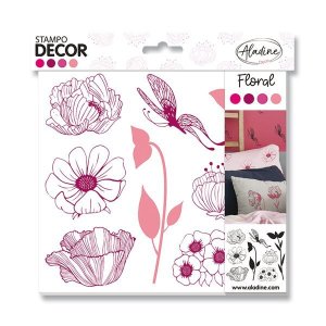 Sada obsahuje 18 různých tamponových razítek Stampo Minos, které dělají opravdu velké obtisky, a 1 podušku s černou razítkovací barvou.