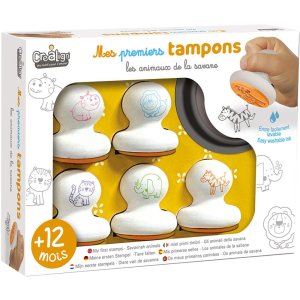 Moje první razítka CRÉA LIGN CL202 Moje první razítka Zvířátka ze savany 6 ks Velká kulatá razítka pro děti s domácími zvířátky od francouzské značky Créa Lign jsou ergonomicky tvarovaná Dobře se drží …