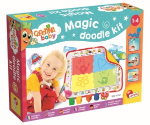 Set obsahuje 10 barevných fixů, 5 oboustranných voskovek, 9 vodovek, 3 pěnová razítka, sešit s omalovánkami, sešit se samolepkami, štětec, inkoustovou podušku a 3 obrázky k vystřihnutí.