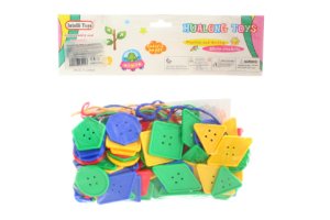 Navlékací knoflíky. Obsahuje také barevné provázky na navlékání.
