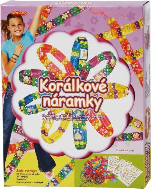 Obsahuje 54 čtvercových náramků, 300 korálků, 9 gumiček, 3 archy pěnových samolepek.