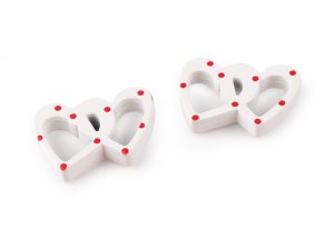 [Dřevěná dekorační srdíčka] mají na spodní straně samolepicí pěnovou tečku.