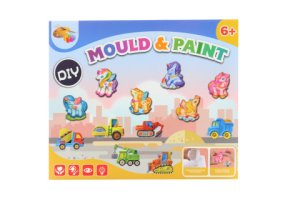 Balení obsahuje sádru, plastovou misku, plastovu formu s 6 druhy autíček, 6 barviček na vybarvení, štěteček, magnety - můžete vytvořit magnetku a návod na přípravu.