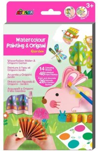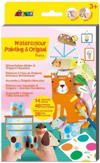 Origami a malování akvarelovými barvami.