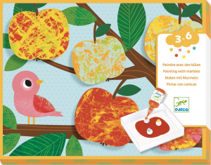 Mramorové obrázky s pomocí skleněných kuliček a barviček.