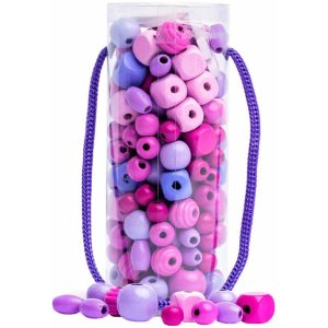 Korálky WOODY Korálky v tubě růžová Tuba obsahuje velké množství klasických i soustružených korálků Součástí jsou také tenké tkanice s koncovkou k provlékání Vhodné pro rozvoj jemné motoriky Praktické …