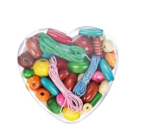 Korálky WOODY Navlékací korálky Srdíčko fialová Sada obsahuje velké množství korálků různých tvarů Součástí také tenké tkanice s koncovkou k provlékání Vhodné pro rozvoj jemné motoriky Baleno v dřevěné …