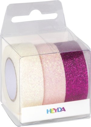 Sada samolepicích třpytivých papírových pásek v barvách tmavě růžová, růžová a perleťová růžová.
