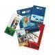 Set obsahuje 10 barevných fixů, 5 oboustranných voskovek, vodovky, 3 EVA razítka, sešit s omalovánkami, sešit se samolepkami, štětec, inkoustovou podušku a 2 obrázky k vystřihnutí.