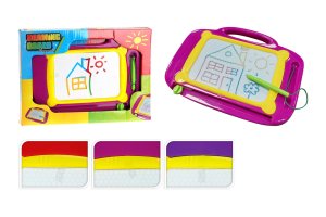 Tabulka magická kreslicí 25 x 18,5 x 1,8 cm, s tužkou, mix barev. rozměry: 25 x 18,5 x 1,8 cm materiál: plast mix barev: červená, růžová, fialová Magnetická kreslicí tabulka pro děti s madlem pro přenášení …