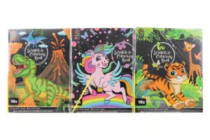 Obsahuje 10 archů, kde jsou z jedné strany vyškrabávací obrázky a z druhé strany omalovánky.