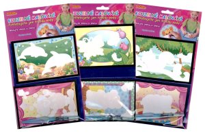 Krásné motivy z klasických pohádek hravou formou seznamují nejmenší děti s kreslením, rozvíjejí mnoho smyslů, především fantazii a vnímání barev.