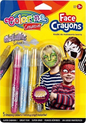 5 barevných tužek pro malování na obličej na olejové bázi.