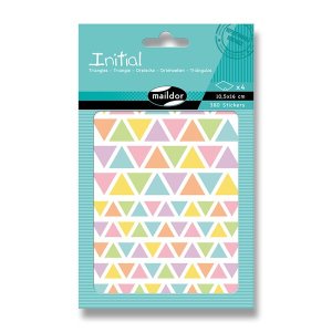 Samolepky Maildor Inital s různými barvami a velikostmi trojúhelníků.