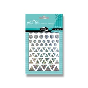 Samolepky Maildor Inital menší velikosti s geometrickými tvary s holografickým efektem.