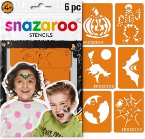 Sada šesti šablon Snazaroo pro snadné vytváření vzorů a ornamentů. tematicky zaměřené na Halloween skvělý doplněk pro malování na obličej a tělo samolepicí podklad udrží šablonu na místě pružný materiál …