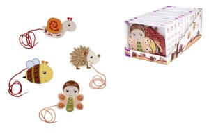 Sada se 4 dřevěnými zvířátky, šňůrkami na vyšívání a dalšími doplňky na ozdobení zvířátek.