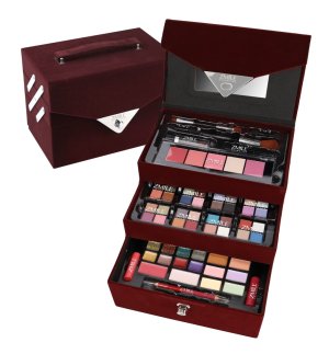 Kosmetický kufřík sametový Beauty Case Velvety – sametový tmavě vínový – celkem 74 ks příslušenství. .