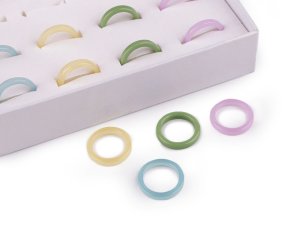 Mix plastových prstýnků je zabalený v papírové kazetě, která má průhledné plastové víko.