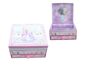Tato kazeta s hrací skříňkou je stylizovaná na šperkovnici a bude ideálním místem pro uložení pokladů každé dívky.