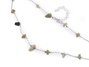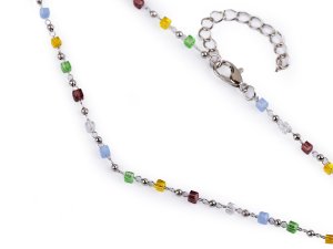Jemný řetízkový náhrdelník z kvalitní nerezové oceli je ozdobený broušenými korálky a korálky syntetických minerálů.