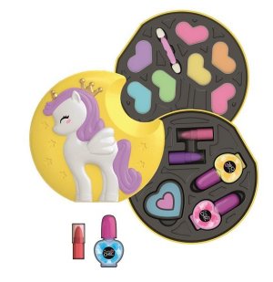 Kosmetická sada pro dívky, které milují módní jednorožce. 2 palety plné stínů, mini rtěnek, lesků na rty a laků, také s náhradními náplněmi, abyste je měli vždy po ruce!