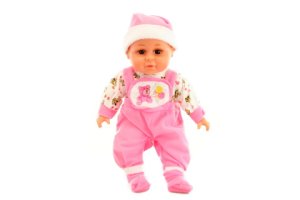 Miminko s měkkým tělíčkem. Po stlačení tělíčka začne miminko vydávat zvuky (smích, pláč, mama, tata).