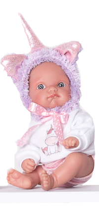 Ručně vyrobená španělská panenka speciálně pro batolata s dudlíkem na magnet.