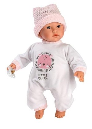Mluvící miminko s měkkým látkovým tělem, které po zatlačení na hrudník začne říkat „mama“, „papa“ a vydávat reálný zvuk plačícího miminka.