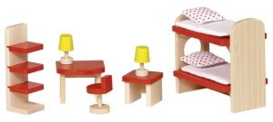 Rozměry kuchyně: 13x5,5x10 cm Rozměry toalety: 3x3x3,5 cm Věk: 3+ Materiál: dřevo, látka Obsahuje 28 dílů