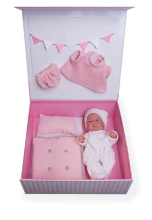5dílný obleček s rychlozavinovací dekou s kapucí pro panenku miminko NEW BORN Llorens velikosti 40-42 cm.