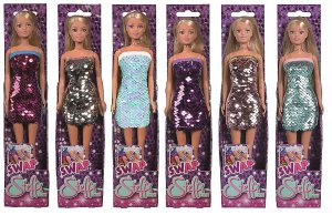 Panenka Steffi v šatech z barevných flitrů se swap efektem.