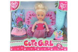 Panenka s doplňky 3v1. Panenku lze proměnit na mořskou pannu, panenku s křídly nebo na princeznu s korunkou.