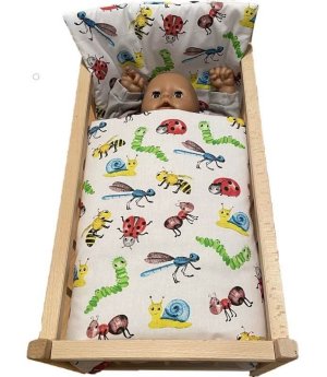 SDS Peřinky do postýlky pro panenky Zvířátka z louky Peřinky do postýlky pro panenky, vyrobeny ze 100% Bavlny, výplň ze 100% Polyesteru je pevně všitá uvnitř, možno prát na 30°C, ušito v ČR, lze objednat …