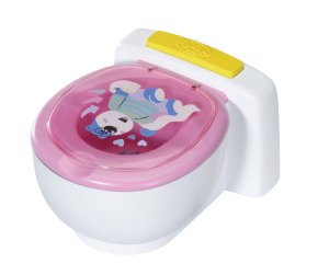 BABY born už chodí na záchod! Jakmile se posadí na svůj bílý trůn s růžovým sedátkem, uslyšíš zvuky čůrání, potlesku a veselého smíchu.