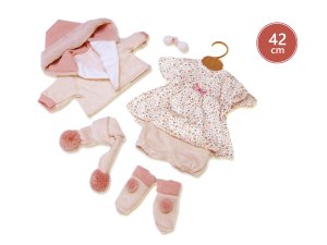 5dílný obleček s ozdobnými gumičkami do vlásků pro panenku Llorens velikosti 42 cm.