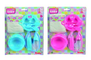 Sada doplňků pro panenky – s lahvičkou, plenou a hracími doplňky.