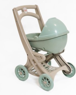 Moderní kočárek pro panenky s hlubokou vaničkou.