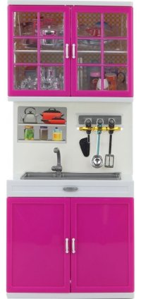 Kuchyňka. Rozměry 10x8x32 cm. Vařič a trouba vydává světelné a zvukové efekty.