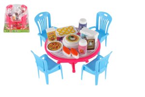 Plastový stoleček prostřený s židličkami.