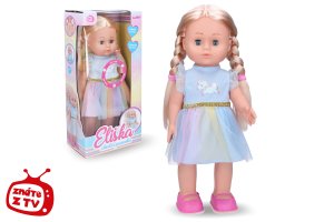 Panenka s měkkým tělíčkem, s 25 dětskými zvuky jako „mama“, „baba“, "hihi“ a mnoha dalšími, s dudlíkem, mrkacíma očima.