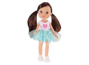 Panenka v růžových šatech je navržena jako elegantní módní doplněk pro malé slečny s výškou přibližně 30 cm.