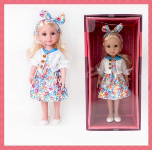 Rozměry balení: 19x39,5x11 cm Věk: 3+ Materiál: parfémovaný vinyl, látka Mrkací hnědé oči Malované černé vlasy