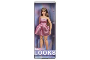 Panenka Barbie® Looks™ Brunetka v růžových mini šatech.