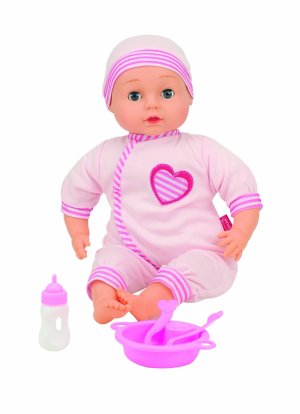 Miminko s doplňky. Panenka po vložení baterií vydává zvuky a čůrá.