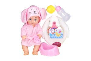 Koupací set u obsahuje vše potřebné pro koupání miminka. Miminko, které je součástí setu se krásně ponoří do vany a můžete ho umýt a pak i pohodlně osušit.