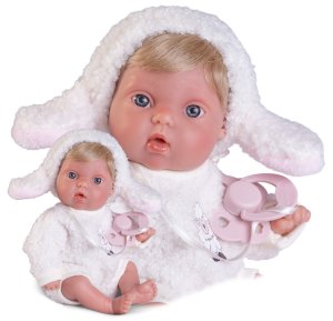 Mrkací a plačící, ručně vyrobená španělská panenka - miminko, reagující na magnetický dudlík.