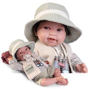 Ručně vyrobená realistická španělská panenka s celovinylovým tělem a vlásky po celé hlavě.