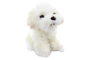 Plyšový maltézský psík o rozměrech 12x18x18 cm.